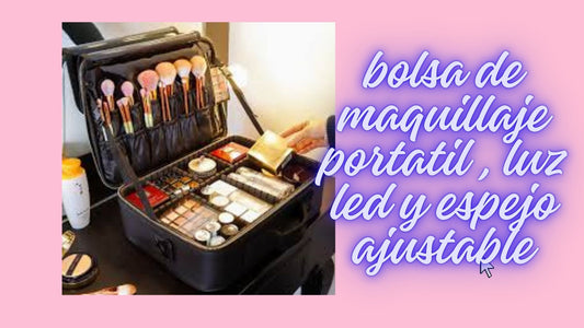 Bolsa de Maquillaje Portátil, con Luz LED y Espejo Ajustable